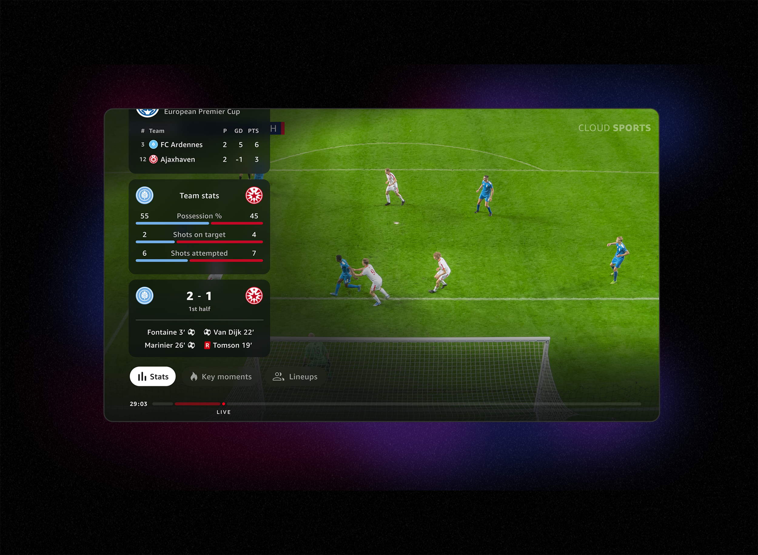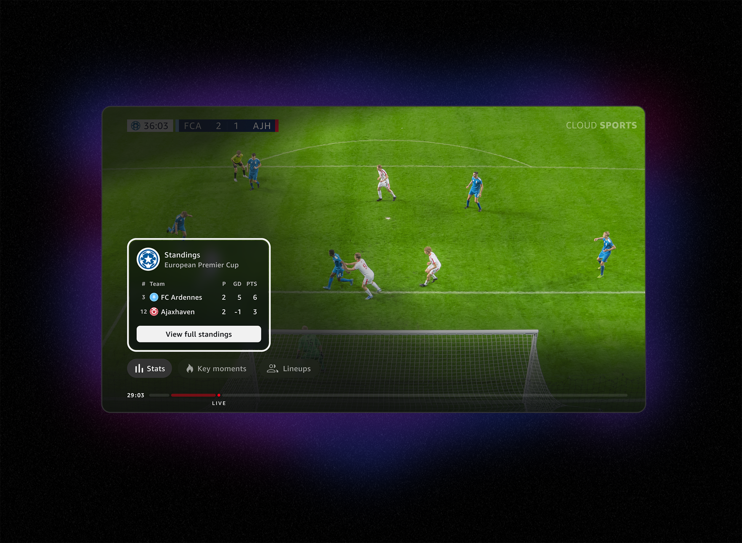 Research and surveys identified score and game time, team comparison, and league standings as the most essential insights fans seek to stay connected to the game. Each card is fully navigable, allowing viewers to drill into expanded data sets when desired.