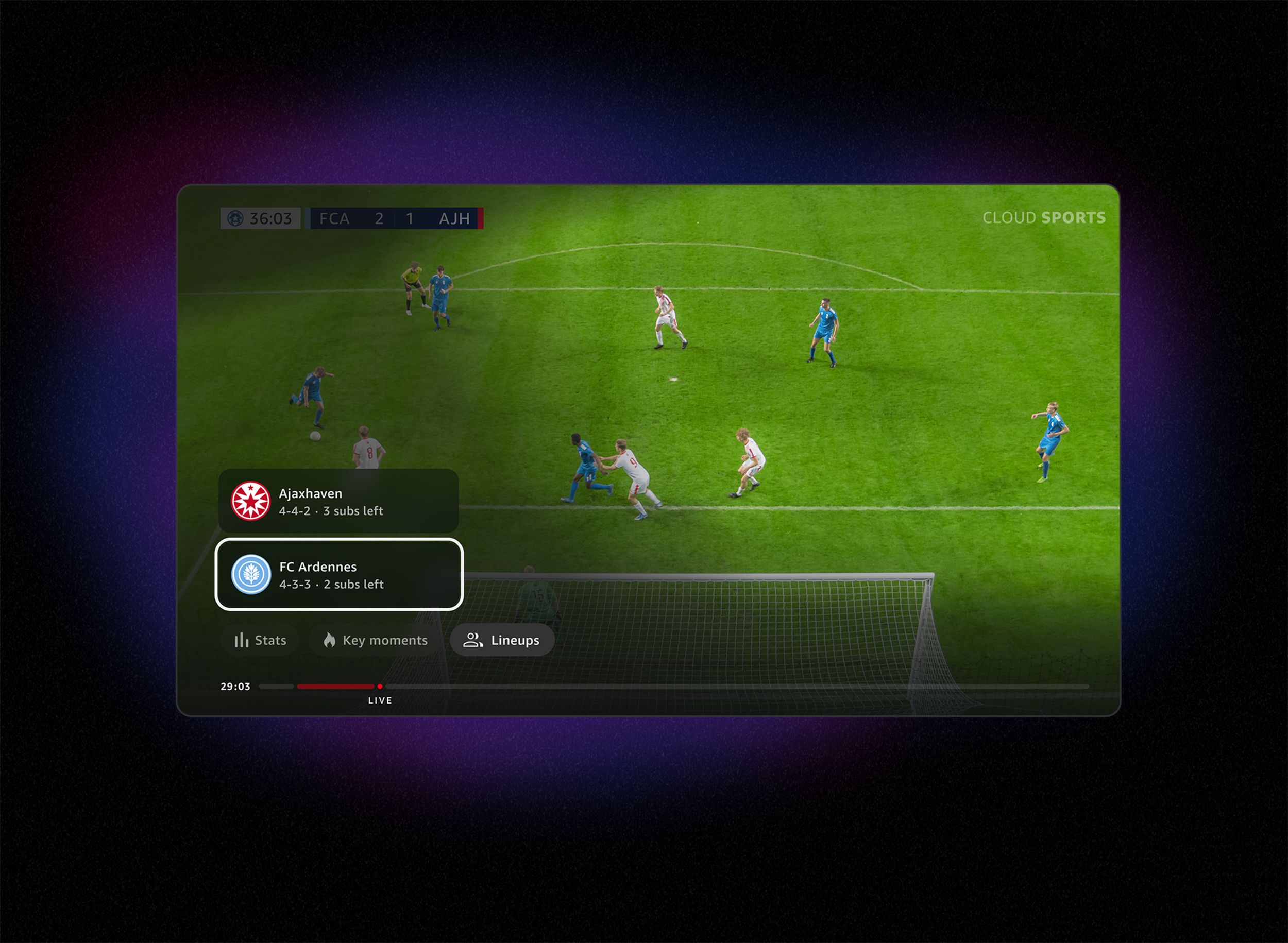 A core pre-game and in-play feature, the Lineups card provides a clear snapshot of each team’s composition and strategy—showing who’s on the field and who’s available to sub in.